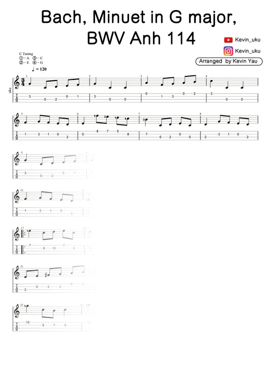 Bach, Minuet in G major, BWV Anh 114 | Ukulele Tab