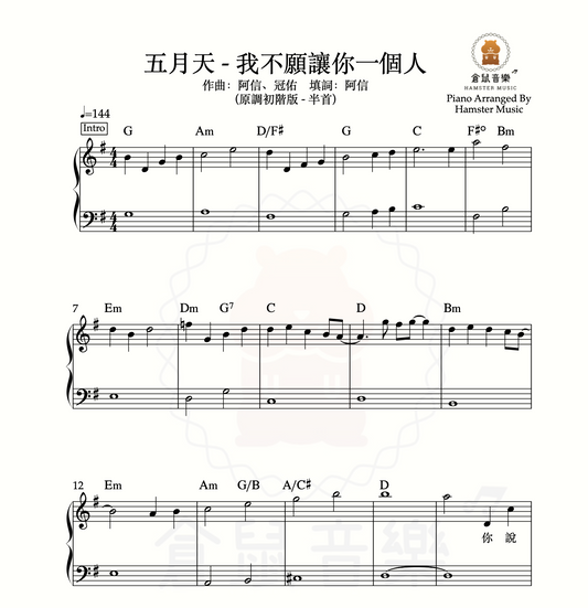 五月天 - 我不願讓你一個人(原調初階版 - 半首)_附前奏、歌詞、和弦