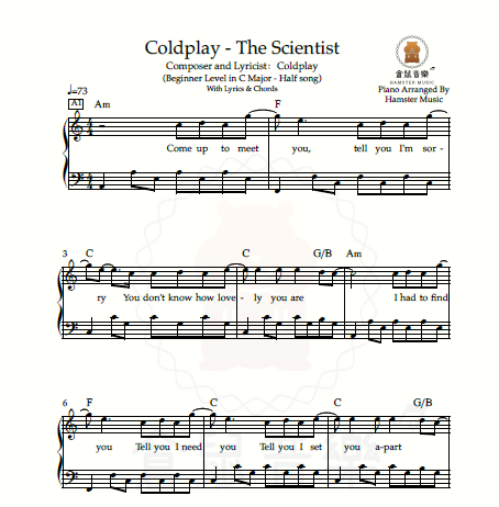 Coldplay - The Scientist(Beginner Level in C Major - Half song)_With Lyrics & Chords
