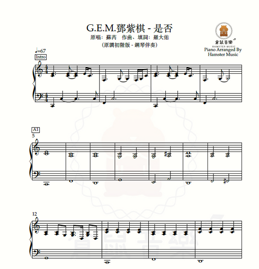 G.E.M.鄧紫棋 - 是否(原調初階版 - 鋼琴伴奏)