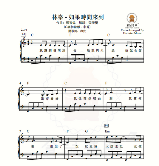 林峯 - 如果時間來到(C調初階版 - 半首)_附歌詞、和弦