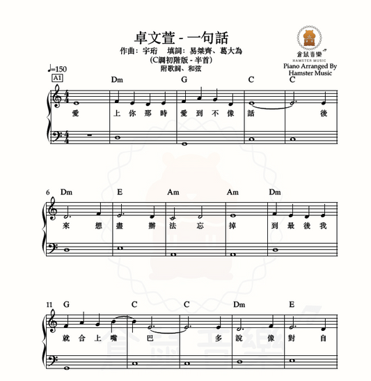卓文萱 - 一句話(C調初階版 - 半首)_附歌詞、和弦