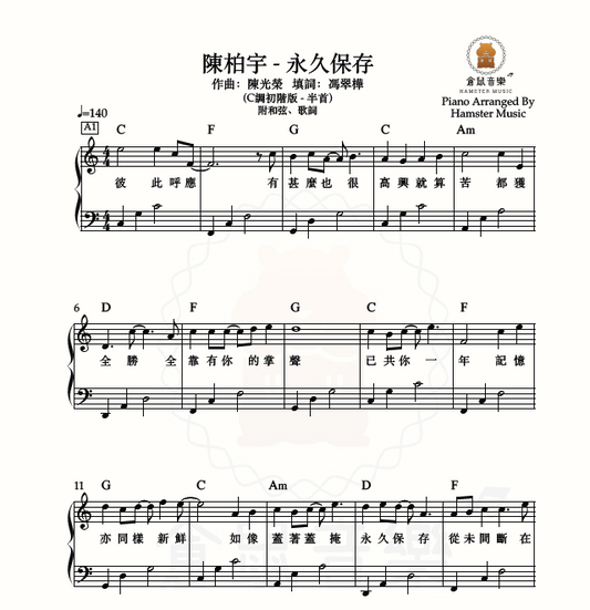 陳柏宇 - 永久保存(C調初階版 - 半首)_附歌詞、和弦