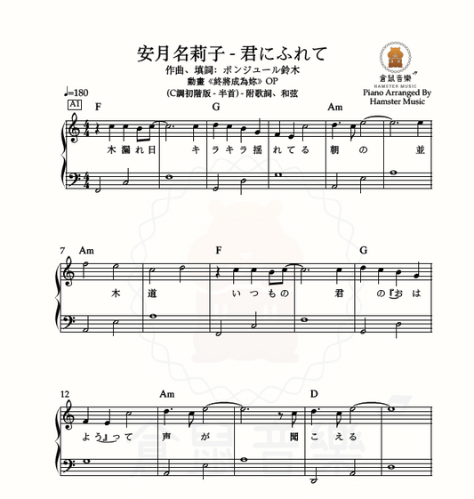 安月名莉子 - 君にふれて(動畫《終將成為妳》OP)(C調初階版 - 半首)_附歌詞、和弦