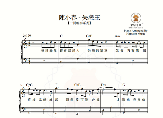 【一頁輕奏系列】陳小春 - 失戀王(附歌詞、和弦)