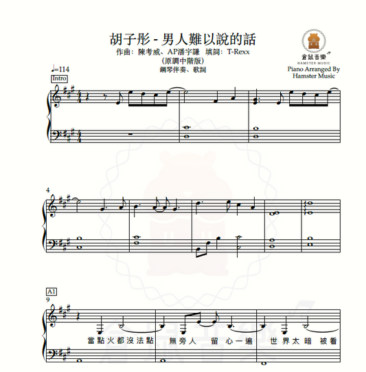 胡子彤 - 男人難以說的話(原調中階版 - 鋼琴伴奏)_附對位歌詞