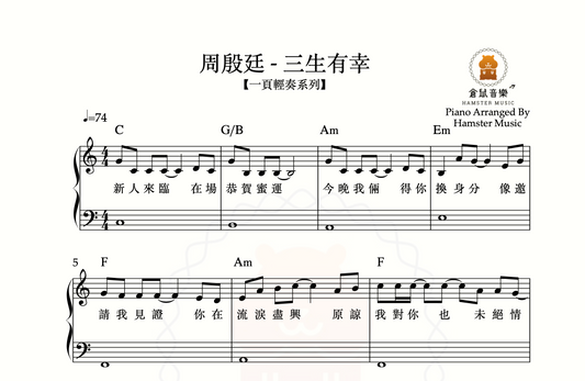 【一頁輕奏系列】周殷廷 - 三生有幸(附歌詞、和弦)