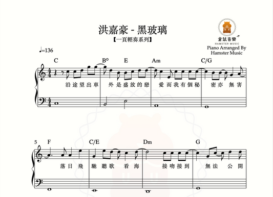 【一頁輕奏系列】洪嘉豪 - 黑玻璃(附歌詞、和弦)