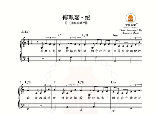 【一頁輕奏系列】傅珮嘉 - 絕(附歌詞、和弦)