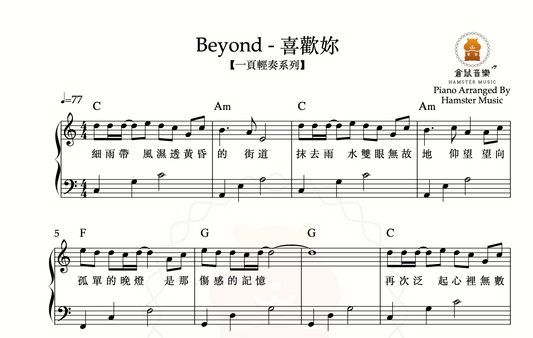 【一頁輕奏系列】Beyond - 喜歡妳(附歌詞、和弦)