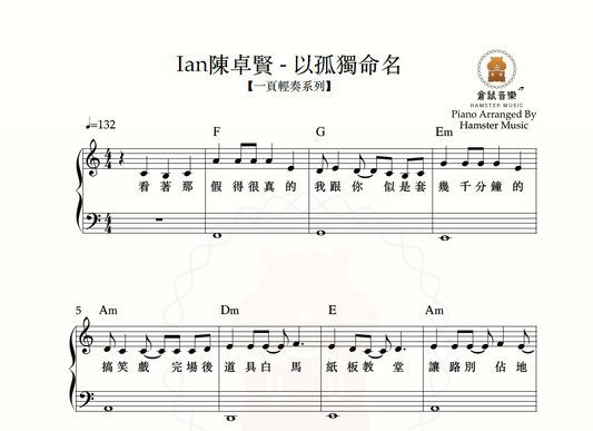 【一頁輕奏系列】Ian 陳卓賢 - 以孤獨命名(附歌詞、和弦)