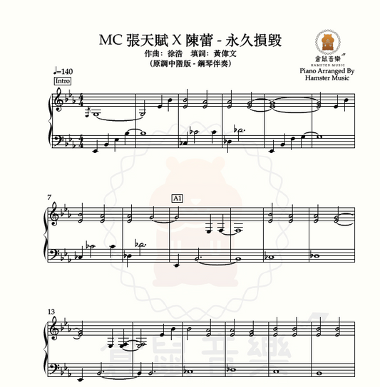 MC 張天賦 X 陳蕾 - 永久損毀(原調中階版 - 鋼琴伴奏)