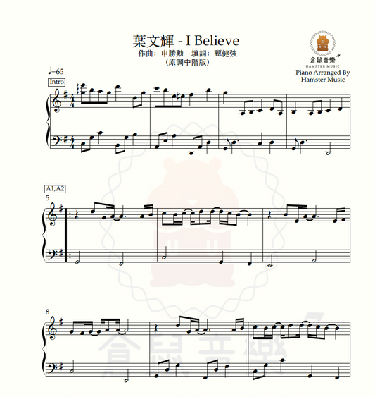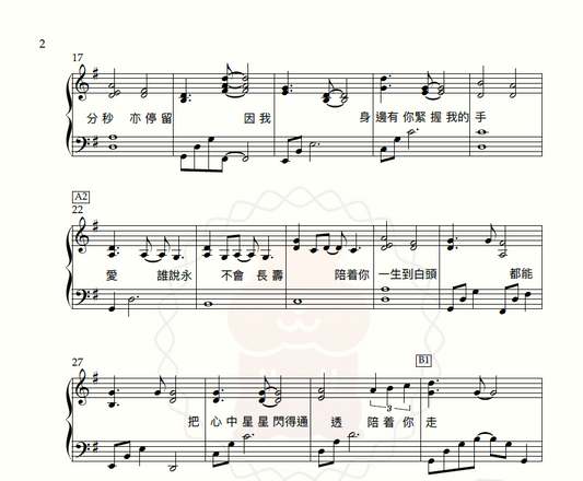 盧冠廷 - 陪著你走(原調高階版 - 鋼琴伴奏,附歌詞)
