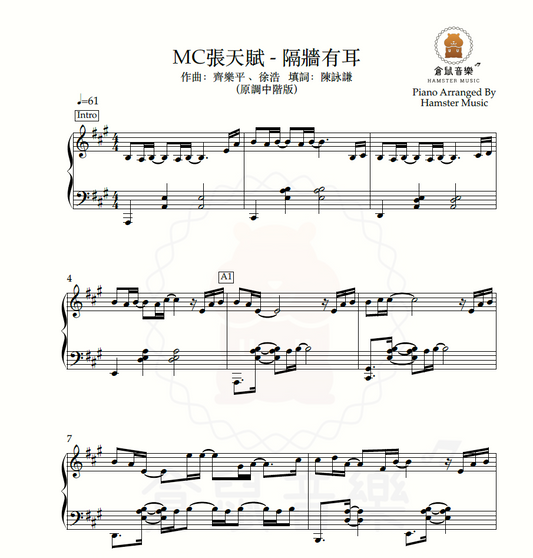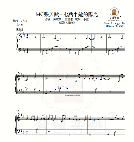 MC張天賦 - 七點半鐘的陽光(原調初階版)