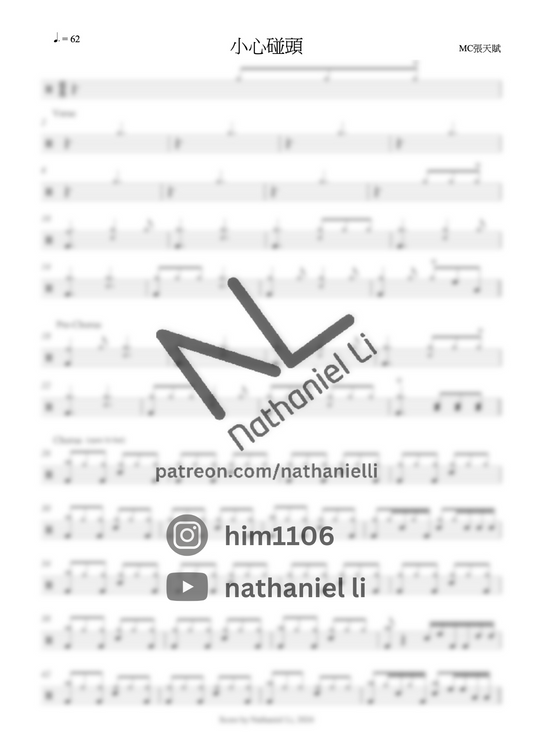 MC張天賦 - 小心碰頭 | 鼓譜