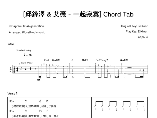 邱鋒澤 & 艾薇 - 一起寂寞 (Chord Tab, Easy Version)