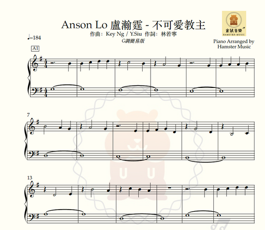 Anson Lo 盧瀚霆 - 不可愛教主 (G調簡易版,段落)