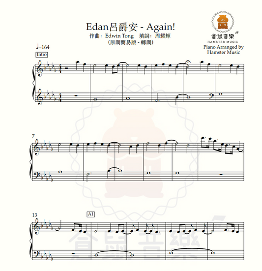 Edan呂爵安 - Again!(原調簡易版,跟原曲轉調)