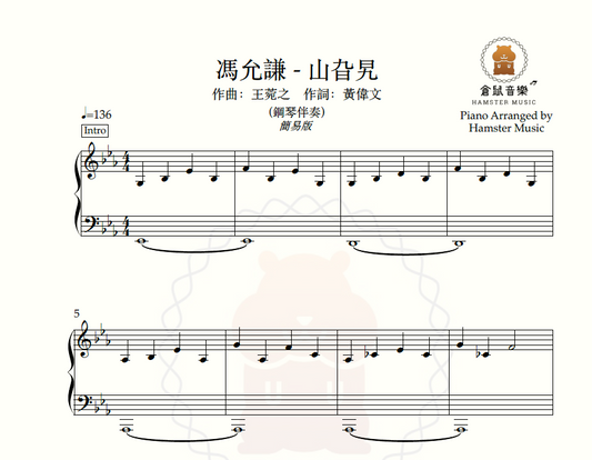 馮允謙 - 山旮旯(原調簡易版 - 鋼琴伴奏)