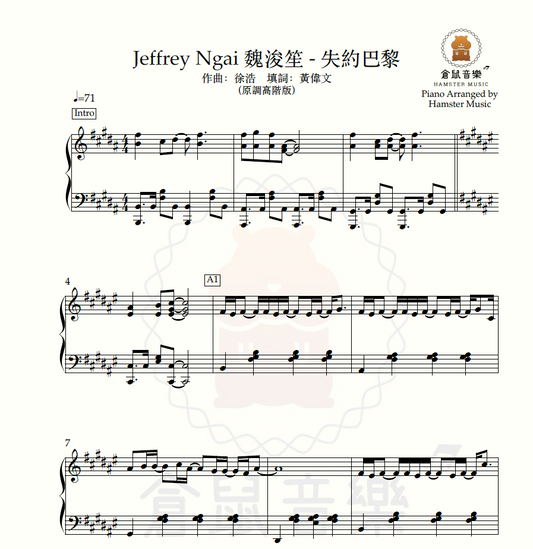 Jeffrey Ngai魏浚笙 - 失約巴黎(原調高階版)